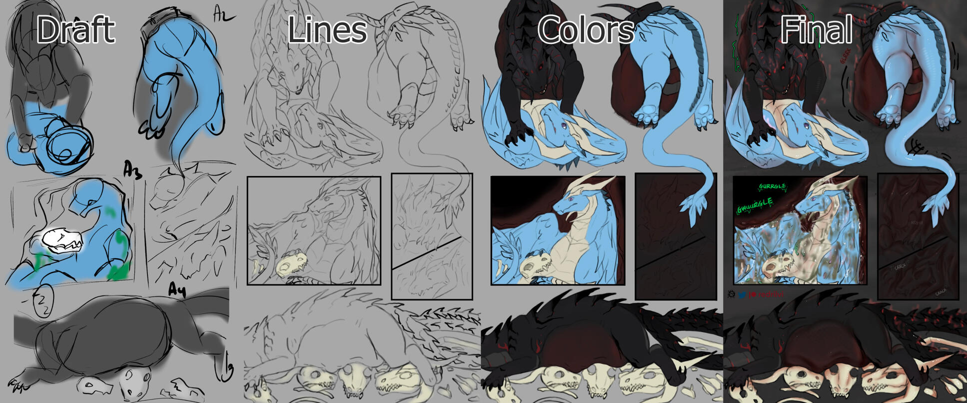 4. I don't draw: endo, no bulges (round bellies), goo/soft digestion, lewd prey, co-hunting with other pred character in any form.