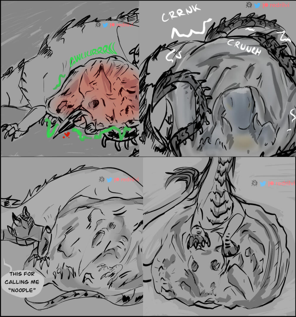 1. Digestion (implied or not) is required. Every artwork will be tagged as "implied fatality" additionally. I do not draw and not interested in scenarios that includes non-fatal vore.